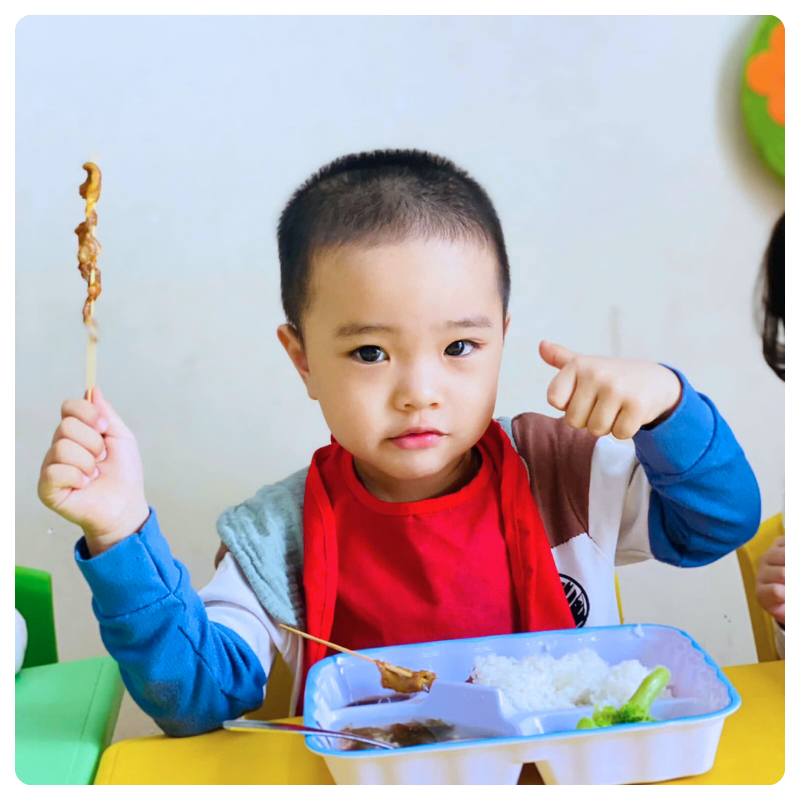 Dinh dưỡng cho bé rất quan trọng, chúng tôi cung cấp các loại thực phẩm sạch với chế độ kỹ lưỡng và quy trình đảm bảo vệ sinh an toàn thực phẩm, Thực đơn đa dạng mỗi ngày thay đổi mỗi tuần. Dạy bé lựa chọn các sản phẩm thực phẩm tốt cho cơ thể, biết tự phục vụ và có thể bảo vệ bản thân khi ăn.